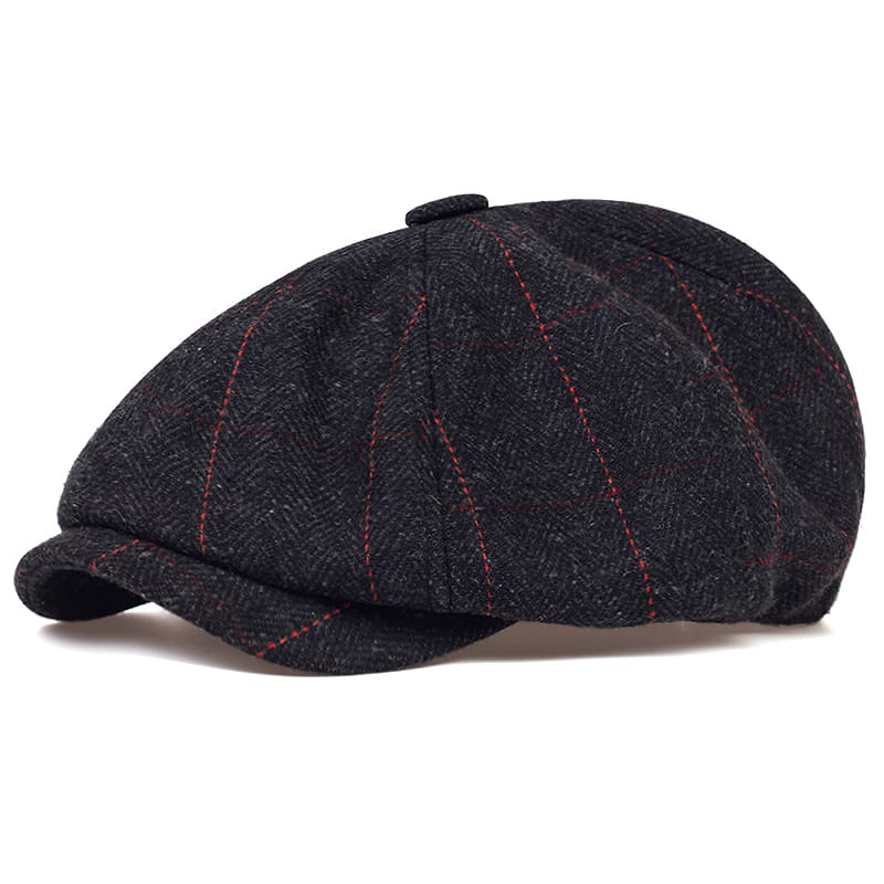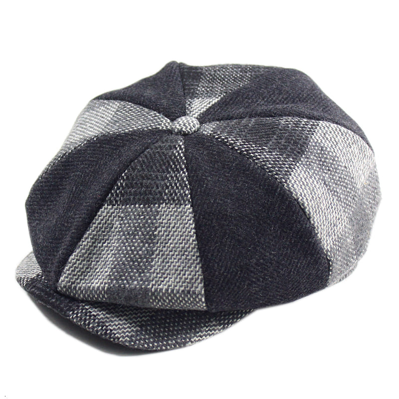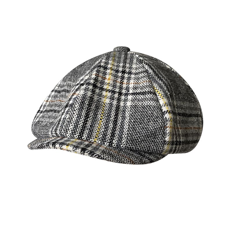 Plaid Herringbone Wool Newsboy Cap