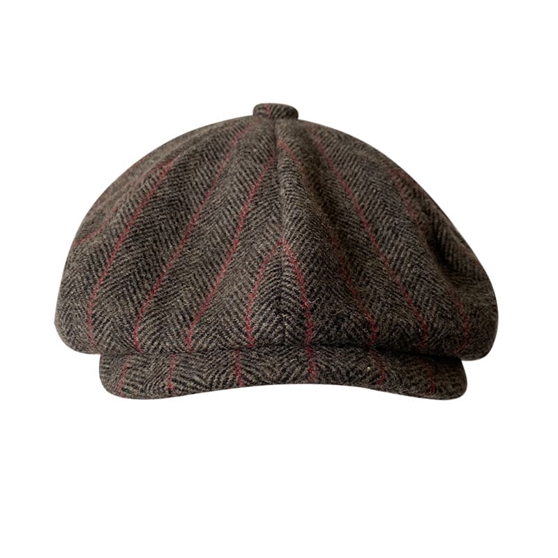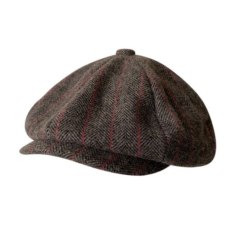 Brown Herringbone & Striped Wool Newsboy Cap